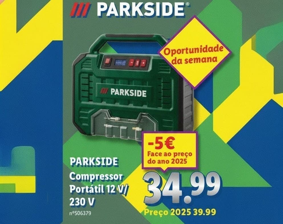 Sendo já tradição semanal estar atento aos lançamentos da semana do Lidl e das ferramentas Parkside, este Compressor Parkside é o acessório ideal para ter sempre a mão, seja na garagem ou até mesmo na mala do carro.